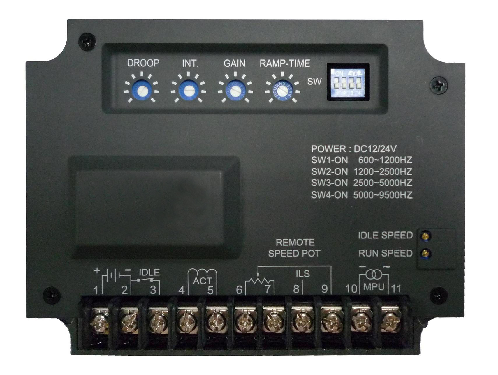 trỏ đến đầu cuối 8 hoặc 9 để thu hẹp phạm vi điều chỉnh. Các dây dẫn được sử dụng để kết nối với đầu cuối 6, 7-8 và 6, 7-9 phải sử dụng 3 dây cáp được che chắn. Dây chắn lá chắn sẽ được kết nối với đầu cuối 10 và đầu kia của rút dây lá chắn phải cắt và thu băng. 5. Ngõ vào 10 và 11 là đầu vào tín hiệu MPU thiết bị đầu cuối. Các dây được sử dụng để kết nối với thiết bị đầu cuối phải sử dụng cáp 2 lá chắn. Các dây dẫn ráo nước sẽ được kết nối với Terminal 10 và đầu kia của dây chắn ráo nên cắt và thu băng.